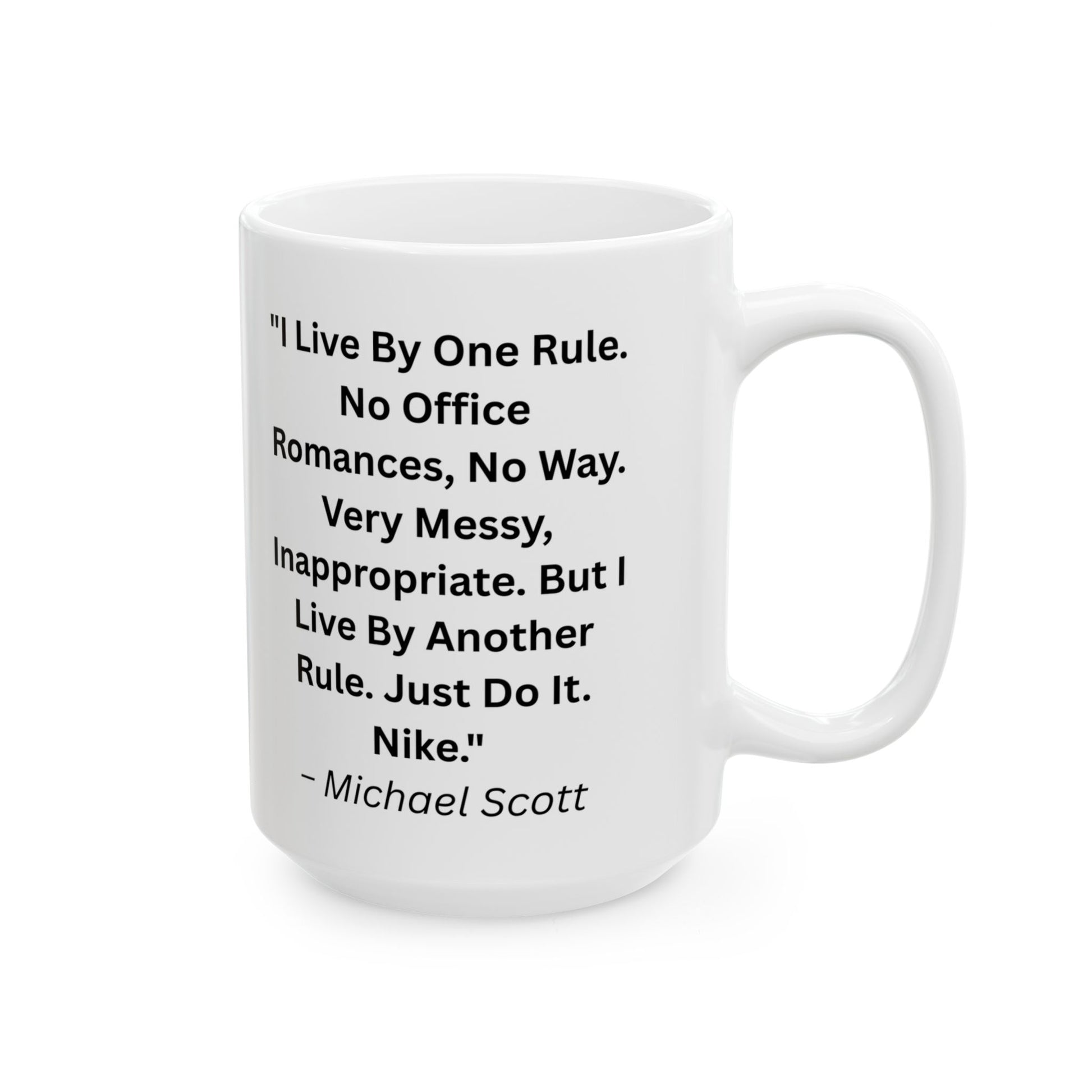 A ceramic mug with a quote from "The Office", perfect for the office setting. Gives a fun and quirky vibe to your morning coffee routine. Ideal for fans of the show and great as a gift for birthdays or holidays.